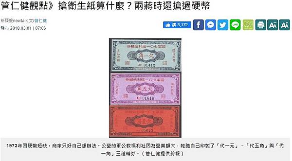 回顧1973年台灣人搶著囤積硬幣的鬧劇,現在搶衛生紙算什麼。國民黨立法院黨團的政客們,既然這麼崇拜兩蔣,那就看看兩蔣掌權時的鬧劇吧!