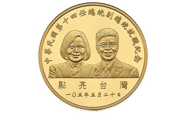 〔記者陳梅英/台北報導〕慶祝總統蔡英文與副總統賴清德就職,中央銀行發行「英德」紀念幣曝光,在總統府幕僚建議下,今年設計走簡潔風,且為了因應疫情,央行首度開放網路申購。不過,由於金價上漲,「英德」紀念幣售價5萬6000元,為歷年總統紀念幣最高價。
