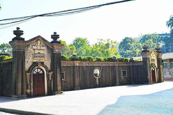繞到管理處大樓的後方,看見一個很大的方形建築,此建築的左右邊各有一扇門,