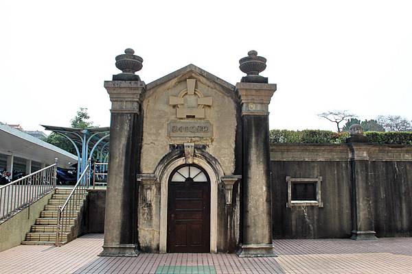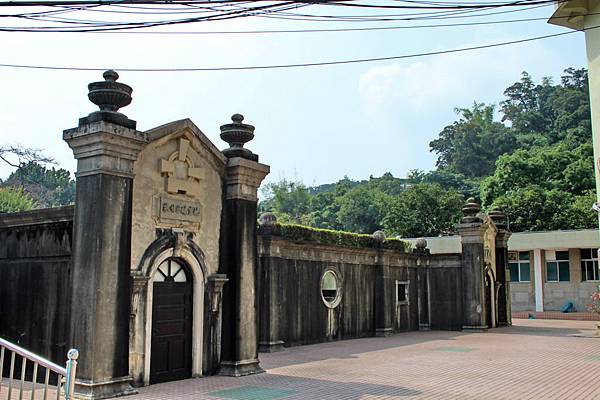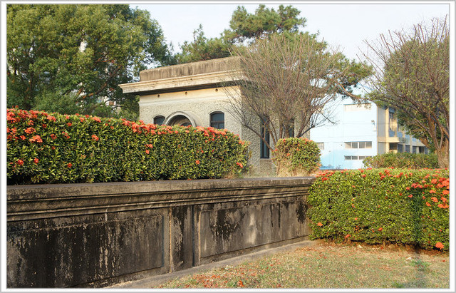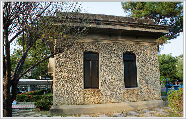 繞到管理處大樓的後方,看見一個很大的方形建築,此建築的左右邊各有一扇門,