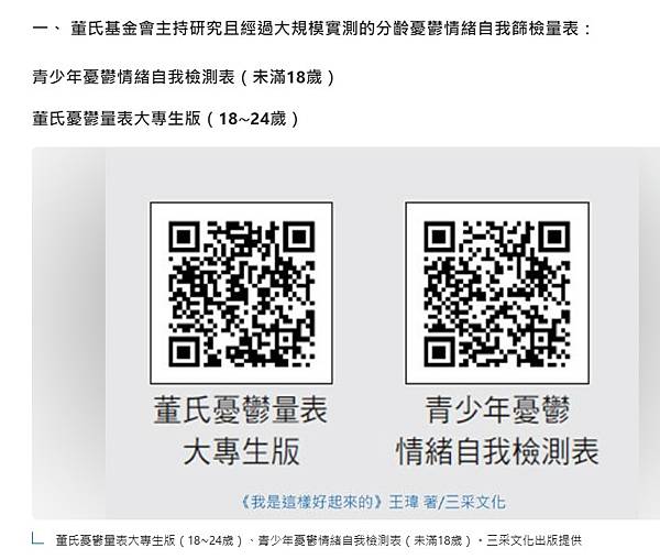 一、 董氏基金會主持研究且經過大規模實測的分齡憂鬱情緒自我篩檢量表: