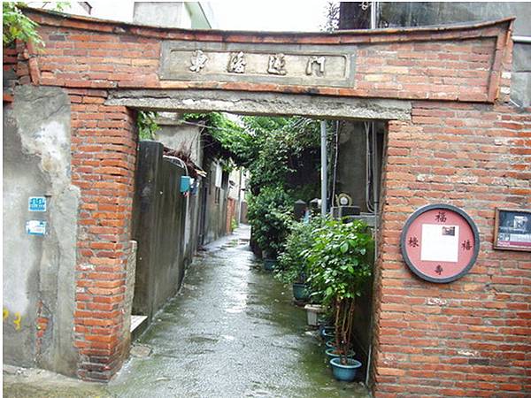 鹿港碩果僅存的磚造隘門,位於後車巷內,上書「門迎後車」四字。