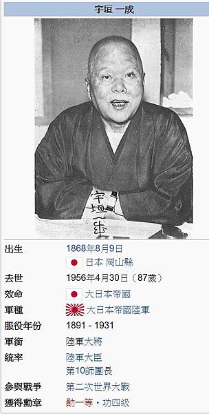 宇垣一成雖被公職追放直到一九五二年才解除,但宇垣與盟軍總部(GHQ)負責情報安全的G-2與Charles A. Willoughby少將之軍事合作則未曾中斷。GHQ透過宇垣機關,統整河邊機關(治安)、有末機關(情報)、服部機關(軍事)與KATO機關,靈活運用日本軍的反共能量,活動預算也由G-2提供。宇垣、根本博、岡村寧次等人未被軍事法庭判刑其理在此。課綱真敢處理小中華與大日本的水乳交融?