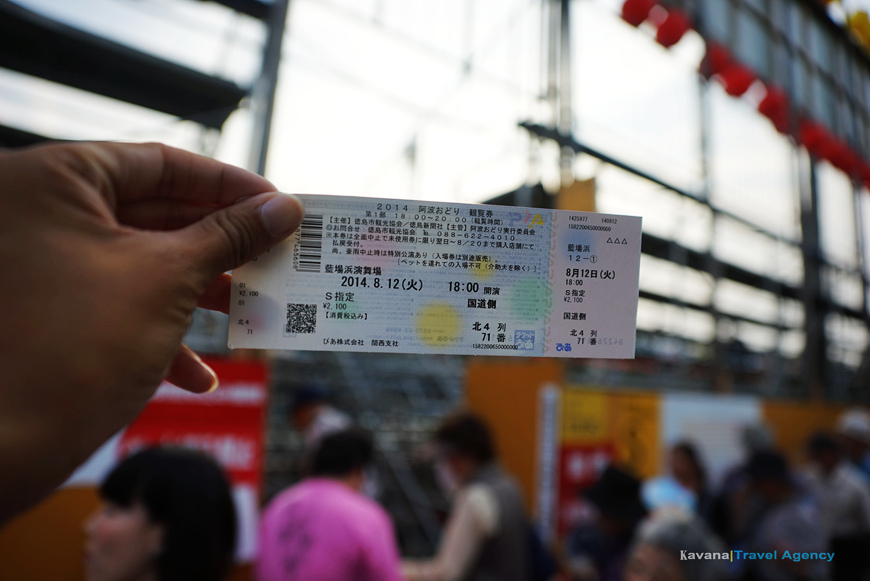 在8月12~15日的德島大街上,每天傍晚6點~10點30分,有4處收費阿波舞演舞場,自由席約800~1000日圓,指定席則要1500~2100日圓(好像搭新幹線一樣),這裡的阿波舞團體較有名氣,每團成員也較多。