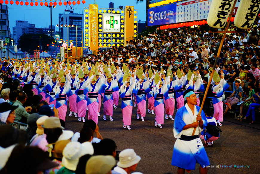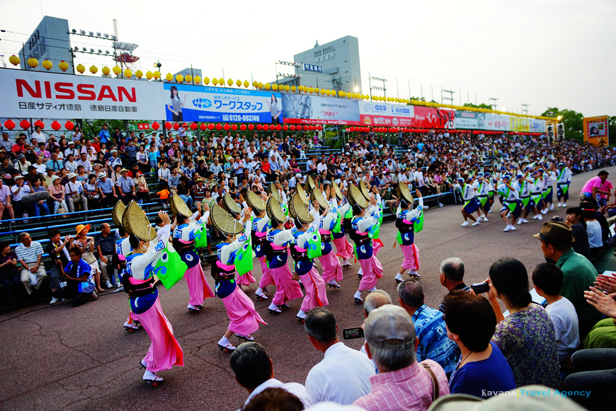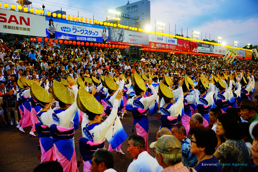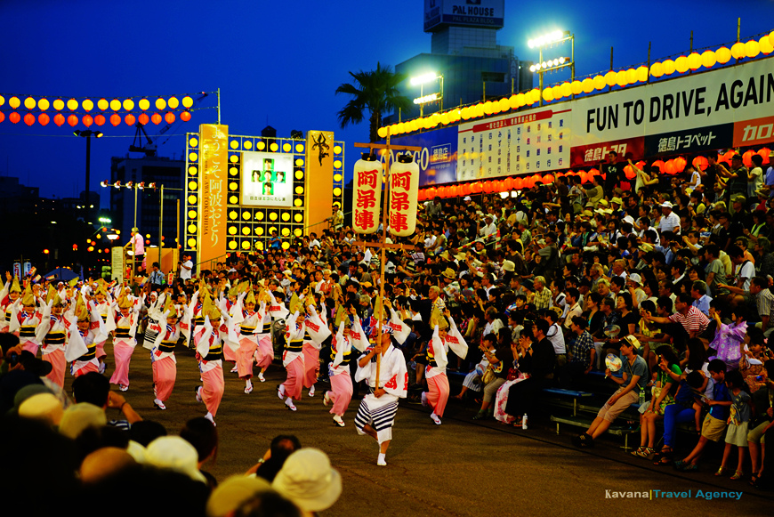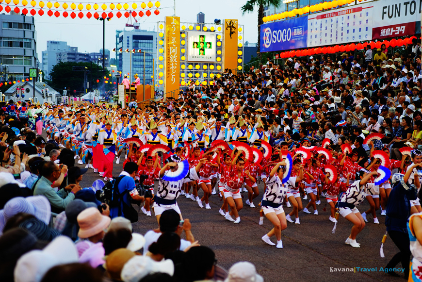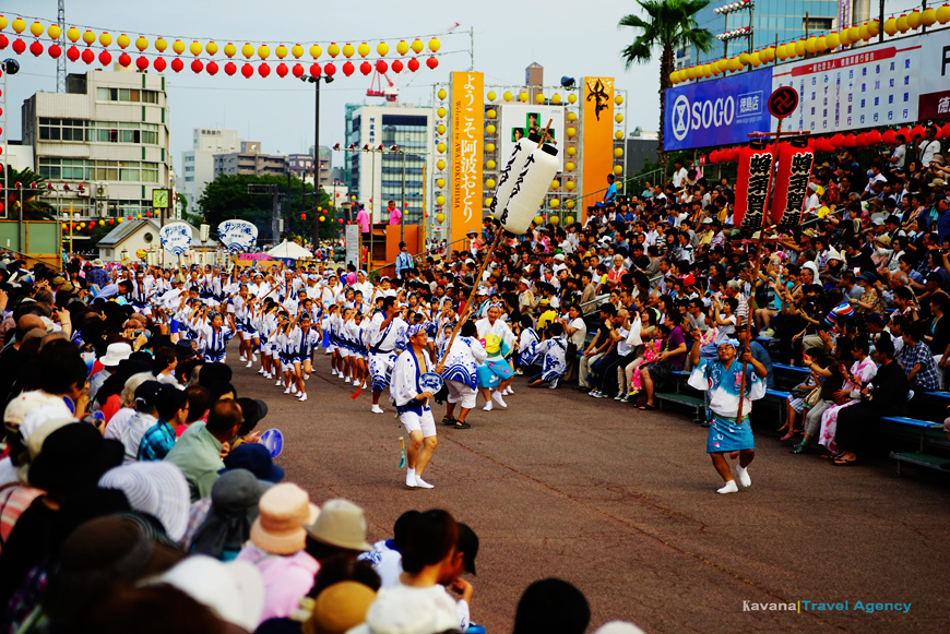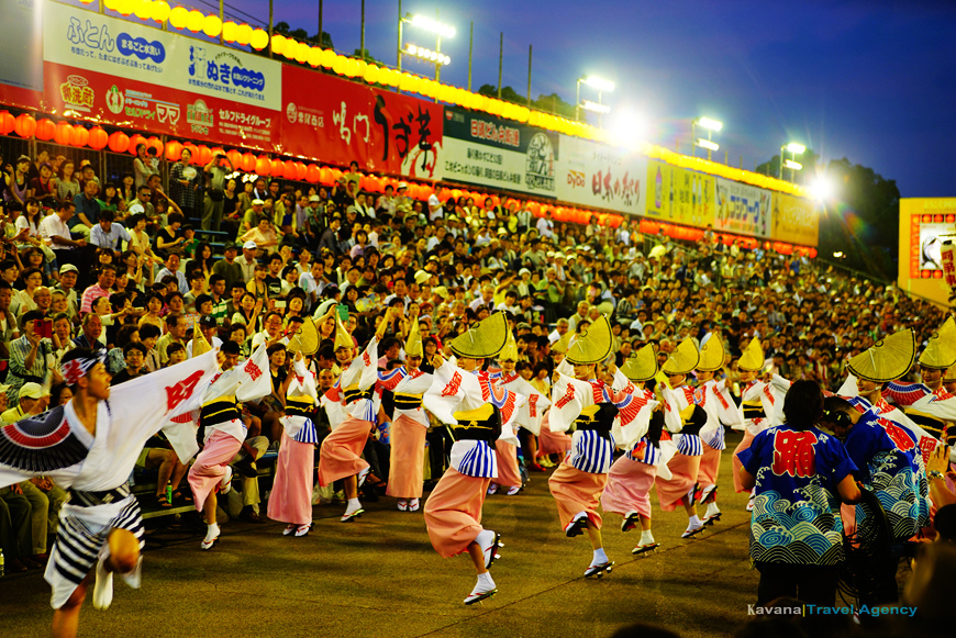 德島的阿波舞 - 為每年8月12-15日,四日間約有100萬以上的觀眾(2008年為133萬人,德島市人口26萬人左右)。