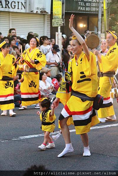 阿波踊り祭典每年都會有名人加入各個連一同跳著阿波踊り,這位女士也是某位名人(但我不認識),一到現場掀起一股騷動!