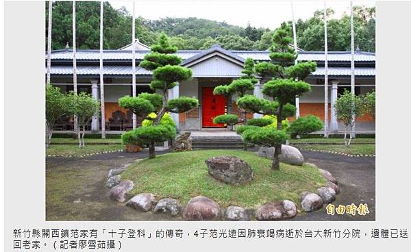 新竹縣關西鎮范家有「十子登科」的傳奇,4子范光遠因肺衰竭病逝於台大新竹分院,遺體已送回老家。(記者廖雪茹攝)