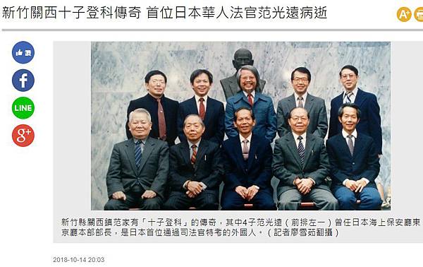 分享新竹關西十子登科傳奇 首位日本華人法官范光遠病逝到Facebook 分享新竹關西十子登科傳奇 首位日本華人法官范光遠病逝到Line 分享新竹關西十子登科傳奇 首位日本華人法官范光遠病逝到Google+