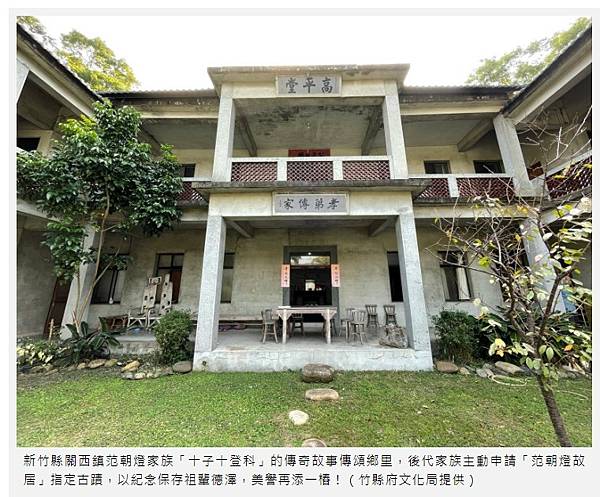 竹縣關西「范朝燈故居」成為指定古蹟 「十子十登科」美譽再添一樁 - 自由藝文網 https://bit.ly/3GSa8oK