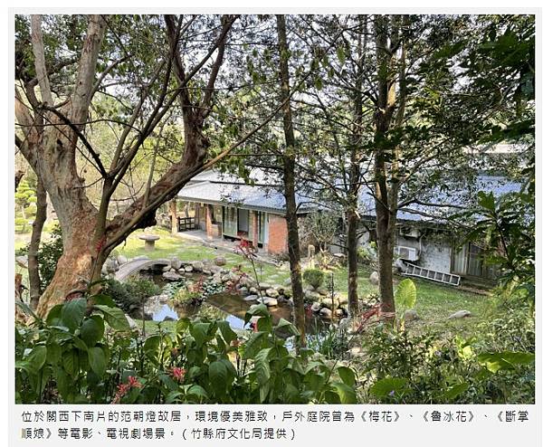位於關西下南片的范朝燈故居,環境優美雅致,戶外庭院曾為《梅花》、《魯冰花》、《斷掌順娘》等電影、電視劇場景。(竹縣府文化局提供)