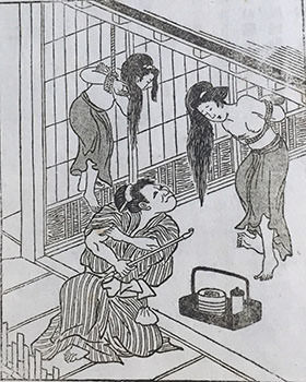 以上のほか、各地の遊廓にて行われし私刑も多かるべけれど、概するに、範を吉原に採りしほかなかるべし。而(しか)してその私刑は、オモニ客待遇の悪き妓と逃走未遂の妓を苦しめしなるが、これらのことは徳川時代よりも以前、すなわち遊女の長者といえる抱主(=遊廓の主人)の出来しクグツメ当時の鎌倉時代・足利時代においても行われしなるべし。