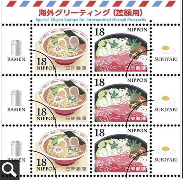 日本郵局經常推出許多特色明信片、造型郵票,這次為配合推廣和食料理推出美食郵票,包含有天婦羅、味噌湯、茶碗蒸等,而海外版部分則是以大家較為熟知的壽喜燒以及拉麵,細膩到連邊緣部分都繪有辣椒粉以及雞蛋等配料,精緻程度讓人看了都餓了。 (黃馨儀/綜合報導)