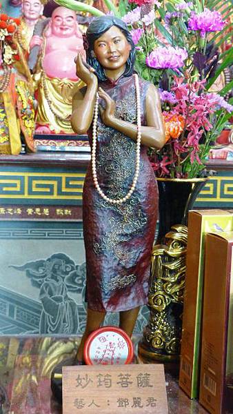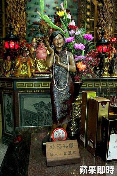 鄧麗君金身「妙筠菩薩」在廣懿宮供人參拜。(記者陳冠備攝)