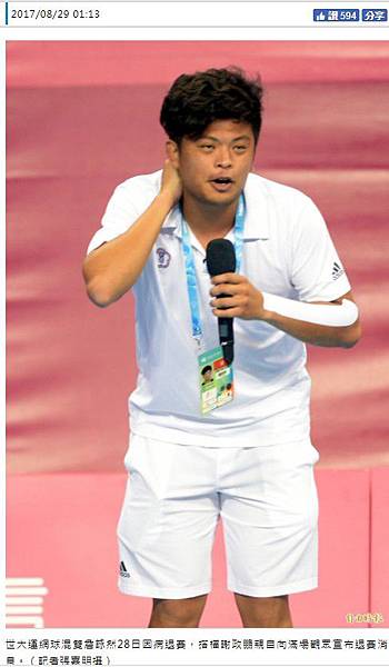 近日世大運順利結束,然而在網球混雙決賽時,詹詠然因為暈眩症而棄賽的疑雲卻越滾越大,而她棄賽後立即飛去打美網的做法更是令群眾傻眼。大家並不是譴責她去比美網,而是對於她當初承諾絕對會打完世大運,卡了其他選手的位子後,卻又棄賽去美國比賽的自私做法不能接受,更遑論她的搭檔謝政鵬早已選擇放棄美網留台比賽。