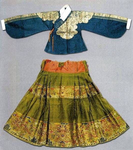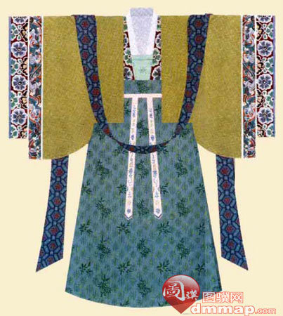 在隋代及初唐時期,婦女的短襦都用小袖,下著緊身長裙,裙腰高係,一般都在腰部以上,有的甚至係在腋下,並以絲帶係扎,給人一種俏麗修長的感覺。
