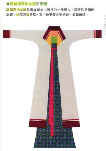 隋朝時期的短襦、長裙及翻領窄袖女服穿戴。