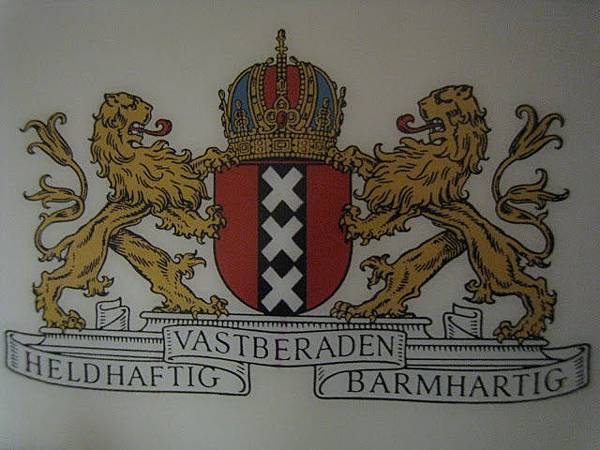 旁邊的兩隻獅子是16世紀才加上去的。1489年的時候, 澳地利同意阿姆斯特丹這種紋章的裝飾能夠加上皇冠