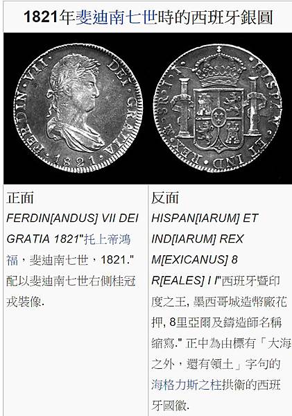 銀幣/台灣曾出現的錢幣/西班牙銀圓/英國"站人"站洋)/西班牙銀幣又稱「佛頭銀」佛頭銀,鑄造於一七七三年/「交易最尚番錢,紅毛所鑄銀幣也」其中的番錢指的就是西班牙銀幣佛頭銀,又稱佛