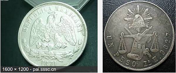 墨西哥鷹洋是指1821年墨西哥獨立後使用的新鑄幣,它是從1823年開始鑄造的。兩者規格相同:直徑39毫米,重量27.07克,成色95.30%。