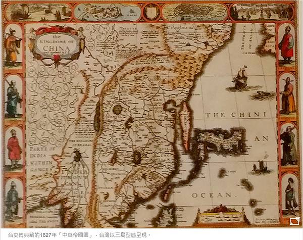 台史博典藏的1627年「中華帝國圖」,台灣以三島型態呈現。