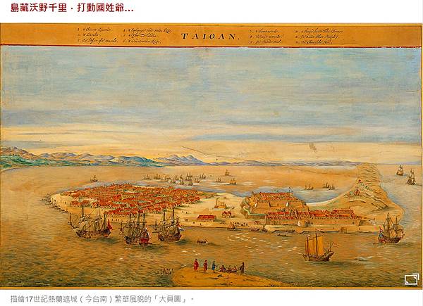 描繪17世紀熱蘭遮城(今台南)繁華風貌的「大員圖」。