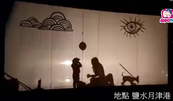 今年鹽水區月津港燈節,台南人劇團團長李維睦設計光影裝置藝術「有影嘸」,用強光投射布幕,供遊客在布幕後演出,呈現皮影戲效果。