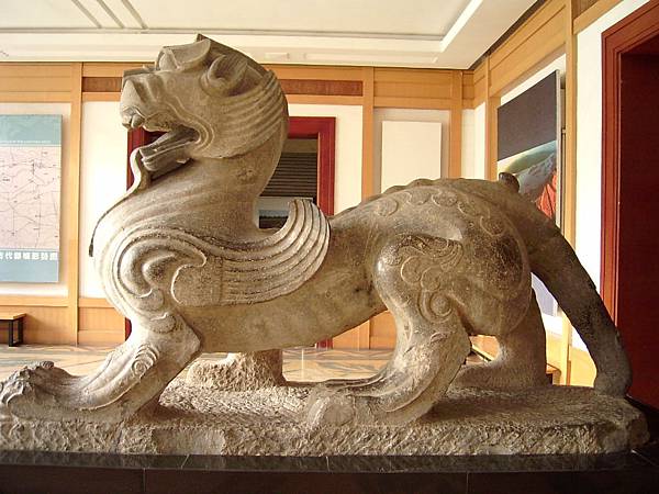 「麒麟」:麒麟也是傳說中的動物,頭如龍,角如鹿,全身鱗甲,尾似牛,足似馬,它與龍、鳳、龜合稱四靈;相傳只有政治清明盛世,才出現的祥瑞之獸,象征死者生前統治英明,是有作爲的黃帝。