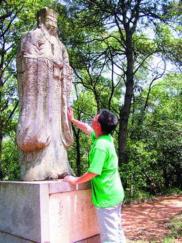 就是這尊“文翁仲”,已經在南郊公園雲海湖後門處經受了20多年風吹雨打。公園工作人員告訴記者,將在此處建設一個亭子,對其進行保護。劉軍攝 本報訊(記者劉軍)在南郊公園,有一尊以“杜甫”命名的石雕像在風雨中站立了20多年。近日,經長沙考古研究所專家鑑定,該雕像不是杜甫像,而是一尊出自唐代或者更早的“文翁仲”。但是,這座“文翁仲”來自何方,還有沒有“同伴”等都是些不解之謎。昨日,南郊公園管理處表示,將建設一個亭子對雕像進行保護。