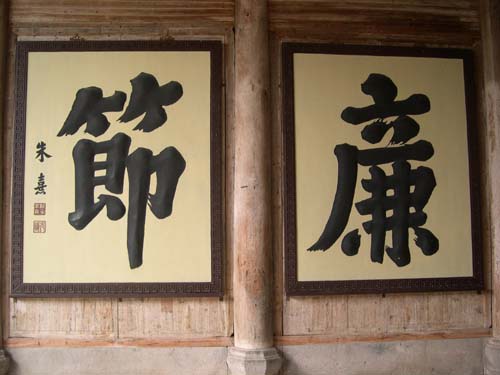到目前為止,已知湖湘大地有三處“忠孝廉節”碑刻,其中兩處在永州境內,它們分別是:長沙岳麓書院講堂左右兩壁鑲嵌碑刻、江永上甘棠月陂亭摩崖石刻和零陵福壽亭東西兩壁鑲嵌碑刻。 從字面上看,這三處“忠孝廉節”碑乃一人所書,都為大字行書,只是尺寸有些差異。岳麓書院講堂碑每字一石,碑高213厘米,寬141厘米,字高169厘米,寬122厘米;上甘棠月陂亭摩崖石刻每字高1米8,寬1米3;福壽亭每碑高180厘米,寬140厘米,字高177厘米,寬122厘米,每字由兩塊石頭拼成。 從字的尺度來講,上甘棠第一,福壽亭次之,岳麓書院第三。從旅遊知名度來講,岳麓書院第一,上甘棠次之,福壽亭第三。 關於“忠孝廉節”為何人所書,官方和民間存在很多版本,眾說紛紜。這三處“忠孝廉節”碑刻中,以岳麓書院為最奇。奇在“忠”字右上刻有“晦庵朱子書”,“節”字右下刻有“皇清道光丁亥後學歐陽厚均敬立”。據已故作家江堤稱,“忠孝廉節”是朱熹在1167年(乾道三年)所書。當時岳麓書院建在抱黃洞下,1194年(紹熙五年)朱熹以荊湖南路轉運使知潭州,將岳麓書院遷建到現在的位置,併題寫了這四個字。因為“晦庵”為朱熹的名號,“朱子”係後人對朱熹的尊稱。但是,“忠”字右上的題款與常識不符,應為立碑人所加,而非朱熹本人題書。至於上甘棠版,乃文天祥克隆朱熹的作品。不過江堤的話剛落音,一些人就有了異議。長沙市博物館某專家認為,“文天祥是'忠孝廉節'碑書法原作者”。因為上甘棠村的“忠孝廉節”摩崖石刻,題為文天祥所書,乾隆二十八年(公元1764年)江永縣知縣所臨。而1983年在長沙孔廟舊址上發現了“廉節”兩方大字,為清嘉慶二十年(公元1816年)摹刻,同樣註明為“宋文天祥書”。另外,《長沙縣志》曾有記載:“長沙孔廟之左偏為明倫堂……左右壁摹刻忠孝廉節”,下有“宋文天祥手書”注文。專家稱,南宋咸淳九年(公元1273年),文天祥任湖南提刑有一年,當時,他感到國勢岌岌可危,於是在長沙孔廟書下“忠孝廉節”。 我不是文物專家,不敢妄斷。但從目前所掌握的資料來看,個人傾向於文天祥所書。理由有四點:首先史書記載,文天祥在任湖南提刑時,曾率兵鎮壓廣西恭城秦孟四的起義,駐紮在江永古澤,達兩個多月。《文天祥全集》收錄了他在江永與左丞相兼樞密使江万裡(時遷授湖南安撫使,知潭州)的數十封通信。清道光《永明縣志》也有收錄。他在《回永州楊守履順》中說:“君相之所柬知,石崖齊天,唐中興頌功處也。”“從上甘棠刻第二頌,旗常濯濯。”可見,文天祥為上甘棠人題過辭。此外,據上甘棠村的有關資料記載,在周如錫的後代中,有一個叫周德厚的曾任杭州太守,他與文天祥情同手足,敢情文賢弟在駐紮江永時應邀題寫了這四個字。後來因文天祥到長沙抗金,他為國捐軀後,長沙人為了紀念這位愛國將領,特意派人來上甘棠把這四個大字拓印過去摹刻到岳麓書院。其次,文天祥在《忠孝提綱序》中說:“為臣忠,為子孝,出於夫人之內心。”,這是他個人的一種思想流露。第三,文天祥原本是個文人學者,後出任將軍,帶兵抗敵。在文天祥有生之年,把大部分精力與時間都投入到了救國事業中,他那不屈不撓的精神和強烈的愛國主義,本身就是“忠孝廉節”的寫照。第四,從字的尺寸大小來看,上甘棠第一,福壽亭次之,岳麓書院第三。我估計是後來的拓印翻刻者,為了表示對原件的尊重,儘管(岳麓書院)用的石頭大,但字的尺寸硬是卻做到比上甘棠原件小,以示序齒。關於零陵福壽亭版本,有人說是清代零陵萍洲書院東安學子唐炳林所書。對此,本人不敢苟同。儘管福壽亭那112字的長聯爲唐炳林所作,但不等於整個福壽亭裡所有的題刻均為唐炳林所書,尤其是“忠孝廉節”這四個字。我多次去福壽亭逗留,仔細觀看,“忠孝廉節”四個大字與長聯上的字相比,起落轉承等結構,風格迥異。如果真像傳說中的那樣,唐炳林為了彰顯家鄉東安人的榮耀,拒絕零陵士紳們以白銀三百兩為交換條件,讓他把對聯中的“東安”二字去掉,那麼,他更會在四個大字的右上或者左下題刻“東安唐炳林敬書(立)”之類的字樣了。所以,在我看來,零陵福壽亭那四個字是誰拓印重刻的,確實有待研究了。 其實,從另一個角度來講,文物的身世朦朧,正是文物本身的一種特殊魅力。作為後輩,我們何必硬要去刨根究底或者胡亂杜撰呢?倒是在這些文物前留影的時候要注意一下分寸,因為我在上甘棠月陂亭看見一對不似夫妻但關係曖昧的男女在“忠孝廉節”石刻前照相時出現了這樣一幕:男的不願在“廉”前留影,女的不願在“節”前留影。也許,他們很有自知之明。試想一下,如果一個貪官在“廉”前留影不久就因東窗事發進了監獄,一個妓女在“節”前留影之後去賣淫被抓,這是多大的諷刺啊!