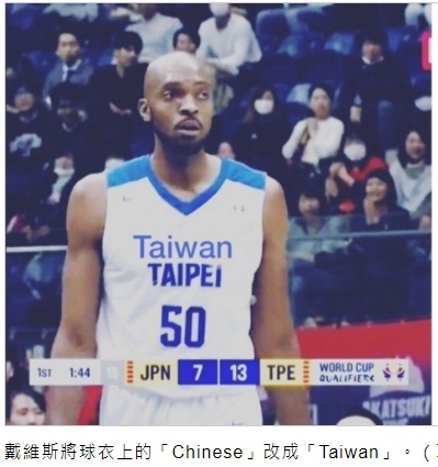 世界盃男籃亞洲區資格賽面對日本打了勝仗,戴維斯表示,當天朋友傳照片給他,看到中華台北字樣,就覺得怪怪的,有人幫他改成「台灣」後,他覺得看起來舒服多了,把照片分享在IG。
