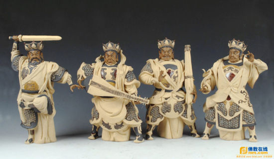 陶瓷做的四大天王東方持國天王,名多羅吒,居須彌山腰東,黃金為地;
