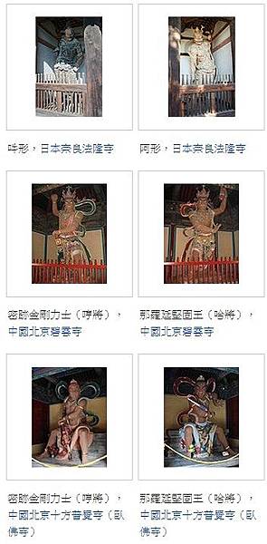 哼哈二將,是兩位佛教神明的俗稱,是執金剛神的一種。經常被繪畫在佛寺的山門上,作為護法,又被尊稱為金剛力士、仁王。在佛教中,有兩位金剛力士,一位叫密跡金剛力士(嘴型為「吽」),是「二十諸天」之一。兩位金剛力士,就守衛在在佛教寺院的山門內的左右,「密跡金剛」在左,「那羅延堅固王」在右,而山門又被稱為仁王門,或仁王殿。