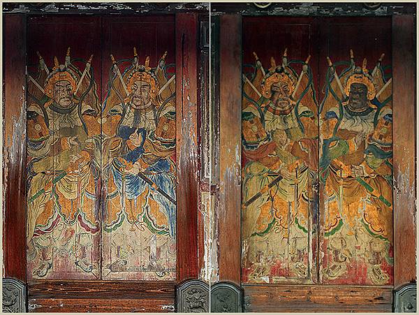 目前已由文資處補助南藝大進行「健康檢查」,針對門神做全面之劣化檢視與紀錄,以「手持式X 射線螢光光譜儀(XRF)」檢測,XRF設備雖然外觀小小一台不顯眼,卻有極大妙用,有如醫生的聽診器,能使修復師在有限的時間與工作環境下,進行元素分析,確認彩繪所使用的原料,以提供後續修復計畫的評估標準。