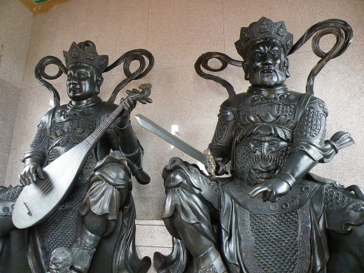 四大天王手上都拿著道具,這道具也是表法的。東方持國天王手上拿著琵琶。代表著做事情不可操之過急,要知道中道,不能過也不能不及;像彈琴一樣,琴弦松了,彈不出聲來,緊了它就斷了。