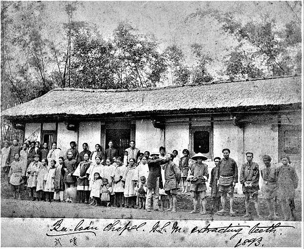 馬偕牧師在宜蘭武暖(噶瑪蘭)平埔教會為信徒拔牙看病。