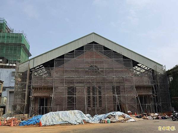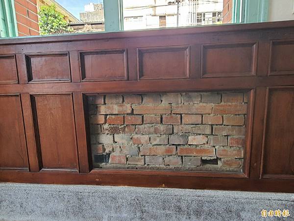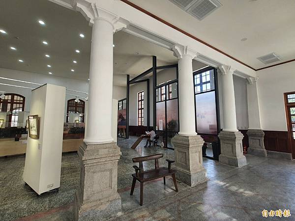 新竹百年歷史建築新竹生活美學館的前身「新竹公會堂」修復工程已完工啟用,還保留當時遭轟炸後所遺留的木頭碳跡和磚塊共存的古蹟原貌。(記者洪美秀攝)