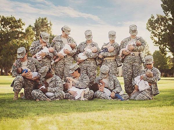 分享最近在網路上瘋傳一張有十名美國女兵穿著軍服,一同袒胸為嬰兒哺乳的照片。拍攝該照片的人士指出,此舉在推動軍中哺乳「正常化」。