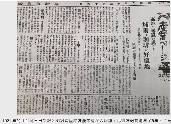 1931年的《台灣日日新報》即對埔里咖啡產業有深入報導,比官方記載還早了5年。(記者佟振國翻攝)