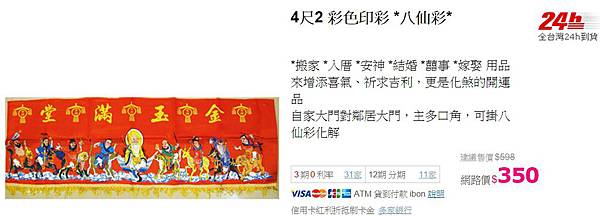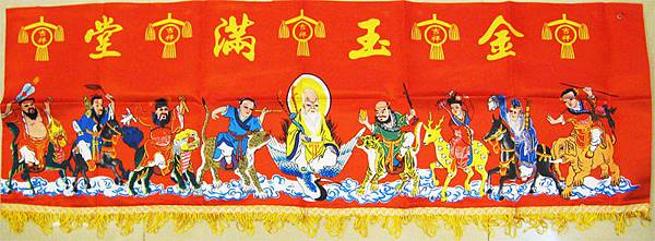 家有喜事時掛的「八仙彩」,上頭有幾人?答案是九人。因台語有「七成八敗」的說法,若上頭只有八仙恐不吉利,故加上南極仙翁,除討吉利,也有「道之極數」的意義。