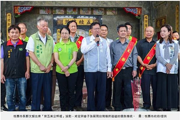 桃園市長鄭文燦出席「葉五美公祭祖」活動,肯定與會子孫展現台灣慎終追遠的優良傳統。 圖:桃園市政府/提供
