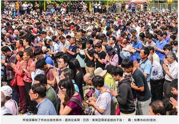 祭祖掃墓除了來自台灣各縣市,還有從美國、巴西、東南亞國家返鄉的子孫。 圖:桃園市政府/提供