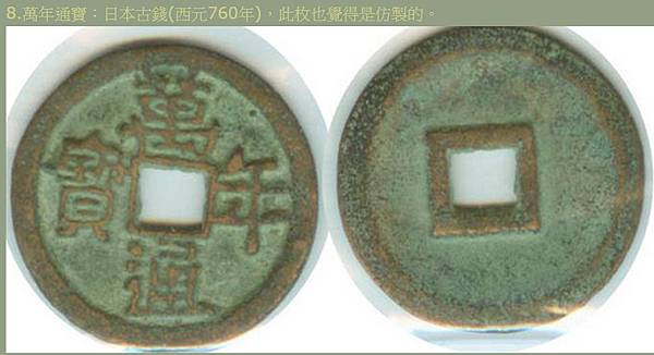 日本最早的錢幣「和同開爾」、和同開寶,就是仿照唐「開元通寶」鑄造的 寶字從珍是此錢的特色. 寶=珍