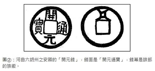 貨幣作為一般等價物,鑄造的數量須達到一定規模,交易中才有條件實現物暢其流。因此與西方之幣值較高的銀幣相比,東方的銅錢仍具有自己的優勢。而毗鄰中亞的新疆地區,受到東西兩方面的影響,曾出現過帶有兩大貨幣文化之特點的產物。比如于闐的「漢佉二體錢」,圓形,無孔,錢面為漢字「六銖錢」,當中為其族徽;錢幕用佉盧文標出王名,當中為駝紋(見圖①)。它雖然是銅錢,但錢文卻是用鋼模打壓而成,並不是鑄出的。再晚些,魏晉時的龜茲地區鑄造了帶方孔的「漢龜二體錢」,則接近中原貨幣。唐時,河曲六胡州之安國部所鑄的錢,正面與唐「開元通寶」無殊,只在錢幕標出族徽(見圖②)。表明來華的九姓胡不僅奉唐之正朔,且亦鑄造和使用開元錢。