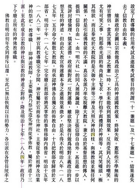 ^ 「朕恭惟 天神 天祖,立極垂統;列皇相承,継之述之。祭政一致,億兆同心。治教明于上,風俗美于下。而中世以降,時有汚隆,道有顕晦,治教之不洽也久矣。今也,天運循環,百度維新,宜明治教,以宣揚惟神大道也。因新命宣教使,以布教天下。汝群臣衆庶,其体斯旨。」安丸良夫・宮地正人編『日本近代思想大系5 宗教と国家』431ページ