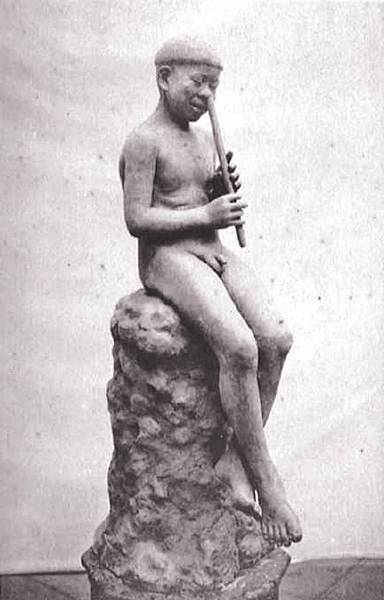 1920年黃土水從東京美術學校畢業後,直接進入該校研究科。不久,他找來宿舍廚師的兒子當模特兒,完成雕塑作品「山童吹笛」,參加第二回「帝國美術展」,即獲入選。當時能入選「帝展」是對藝術家至高的肯定。時年僅26歲的黃土水是第一位入選「帝展」的台灣人。當時台灣各大報紙都大篇幅報導此一消息。