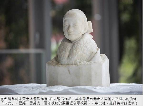 黃土水《少女》胸像自從2020年於北師美術館「不朽的青春─台灣美術再發現」展覽展出,驚豔各方。因為該展的專業、圓滿與成功,亦間接促成已經封存47年的《甘露水》重見天日,補上了台灣美術史一塊重要拼圖,守護作品的張鴻標家族後代無條件捐獻國家,並經過半年修復,於《光─臺灣文化的啟蒙與自覺》展覽展出,成為重要焦點。黃土水在台灣美術史上的角色可見一斑。