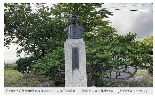 日治時代設置於橋頭高雄糖廠的「山本悌二郎銅像」,即將從佐渡市歸還台灣。(駐日台灣文化中心)