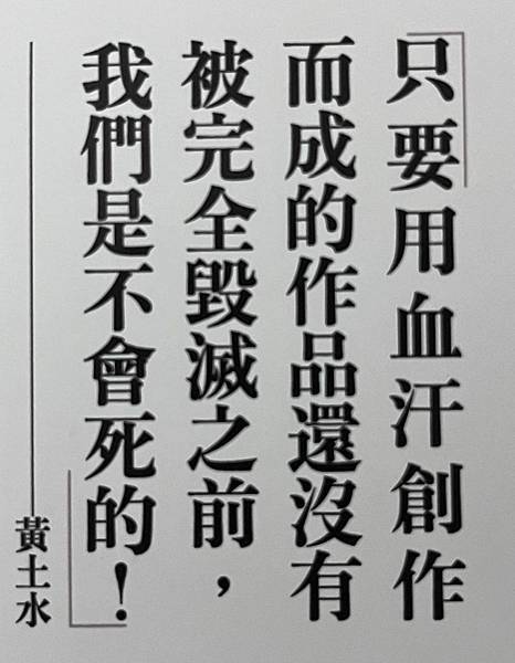 那時27歲的黃土水,揣想人間不過五十載,自己已耗去大半,勢必得更加用力創作,他寫道:「殘餘的生命中究竟會完成什麼樣的作品呢?雕刻家的重要使命在於創造出優良的作品,使目前人類的生活更加美化。」把生命奉獻給藝術的黃土水,35歲便步下人生舞台,但他的作品跨越有限的時間及肉身,成為回望台灣美術史的重要里程碑。