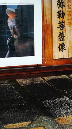 就像多數擁有「國寶」的寺院,廣隆寺的靈雲殿不准拍照。我默默收起相機,目光順著一整排佛像巡梭過去,然後就看到「她」了,那尊微笑的菩薩。
