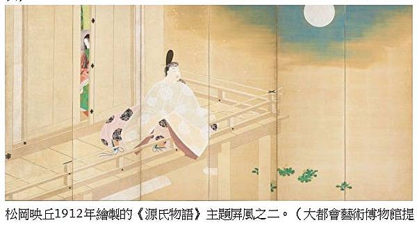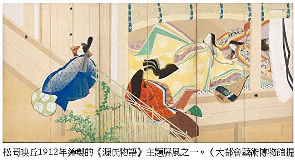 松岡映丘1912年繪製的《源氏物語》主題屏風之二。(大都會藝術博物館提供)